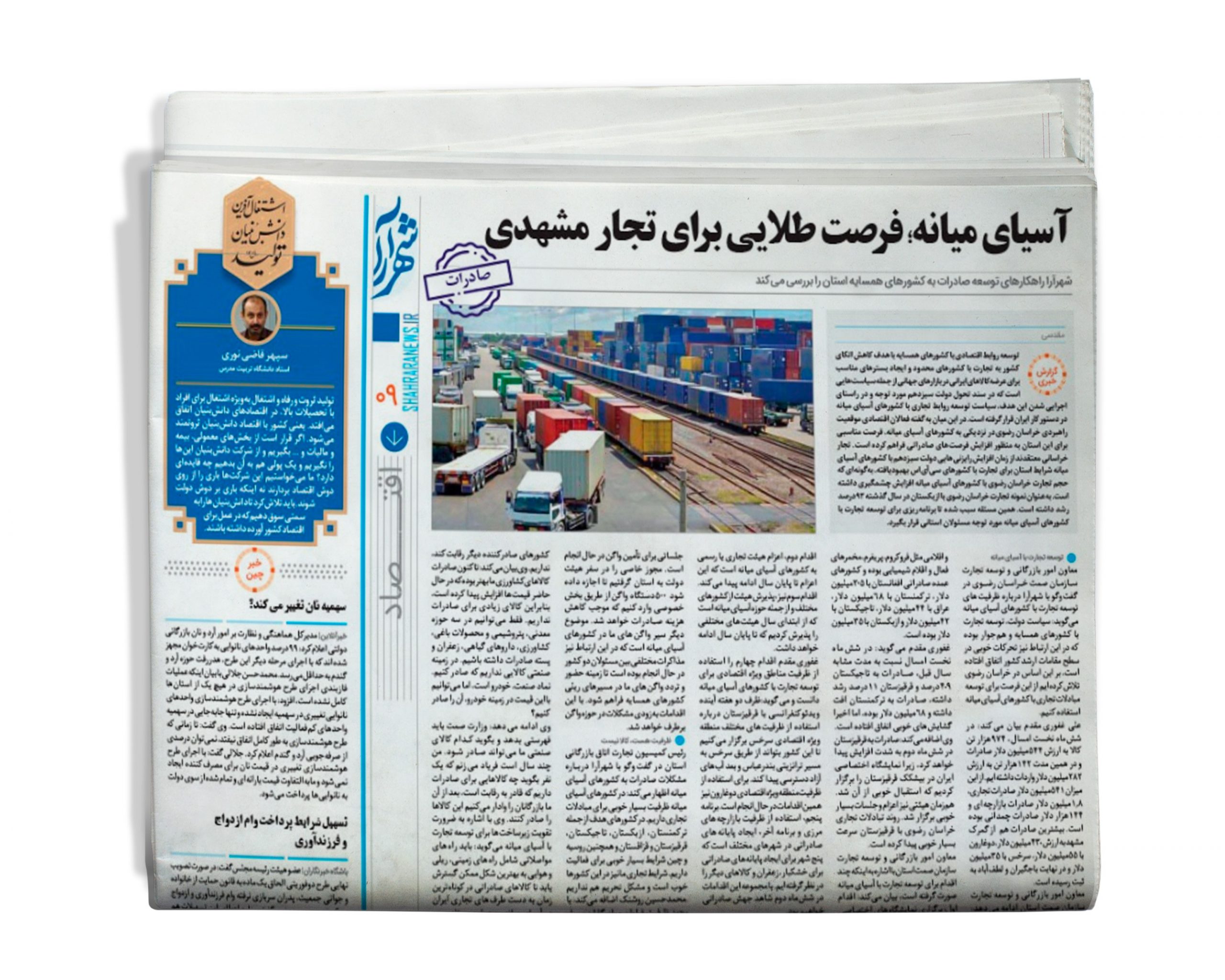 شهرآرا برای بررسی راهکارهای توسعه صادرات به کشورهای همسایه استان خراسان رضوی با علی غفوری مقدم؛ معاون امور بازرگانی و توسعه تجارت سازمان صمت خراسان رضوی و محمد حسین روشنک، رئیس اتاق مشترک بازرگانی ایران و تاجیکستان به گفتوگو نشست:
