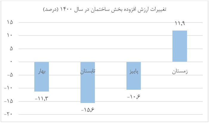 بهبود روند بخش‌های مختلف اقتصاد کشور با آغاز به کار دولت سیزدهم به طور ویژه در بخش ساختمان نمود یافت. بر اساس گزارش بانک مرکزی بخش ساختمان کشور در سه فصل ابتدایی رشد منفی را تجربه کرد اما در فصل چهارم توانست رشد مثبت را تجربه کند. نمودار زیر رشد فصلی بخش ساختمان در سال گذشته را نشان می‌دهد.