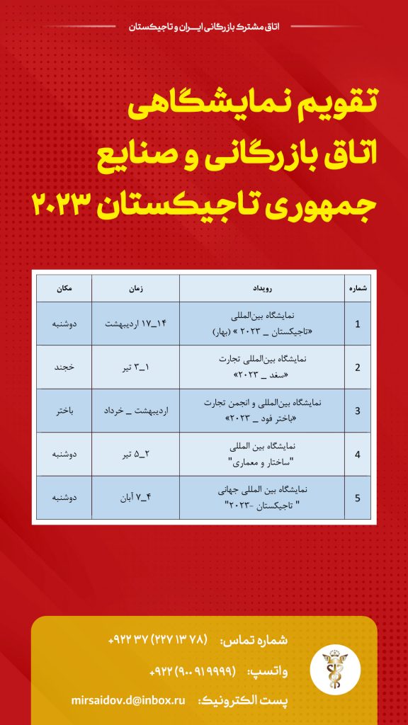 تقویم نمایشگاهی اتاق بازرگانی و صنایع جمهوری تاجیکستان 2023
