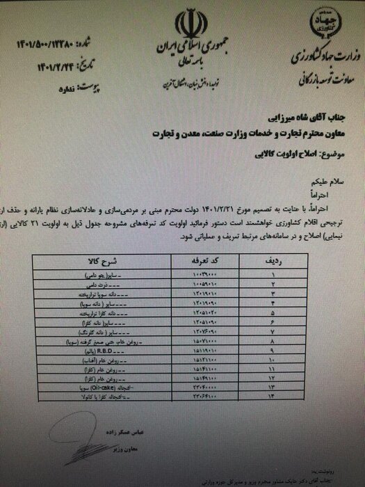 به گزارش ایرنا، طبق مصوبه دولت سقف قیمت فروش نهادههای دامی در مبادی ورودی برای هر کیلوگرم ذرت ۱۱ هزار و ۳۰۰ تومان، جو ۱۱ هزار و ۳۰۰ تومان و کنجاله سویا ۱۶ هزار و ۳۰۰ تومان تعیین شده است.