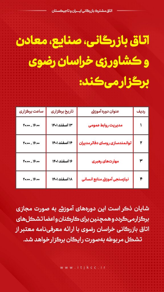 دورههای آموزشی اتاق بازرگانی، صنایع، معادن و کشاورزی خراسان رضوی