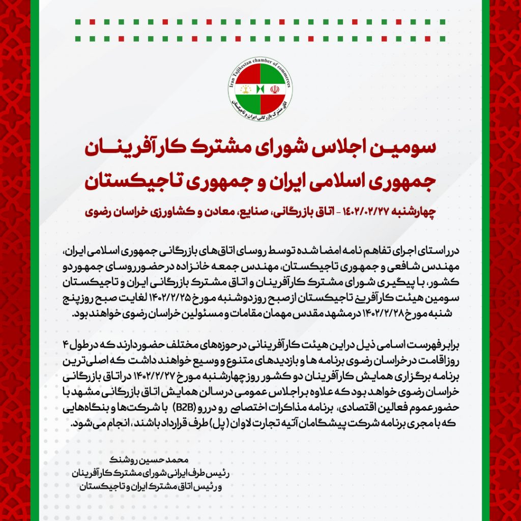 سومین اجلاس شورای مشترک کارآفرینان جمهوری اسلامی ایران و جمهوری تاجیکستان