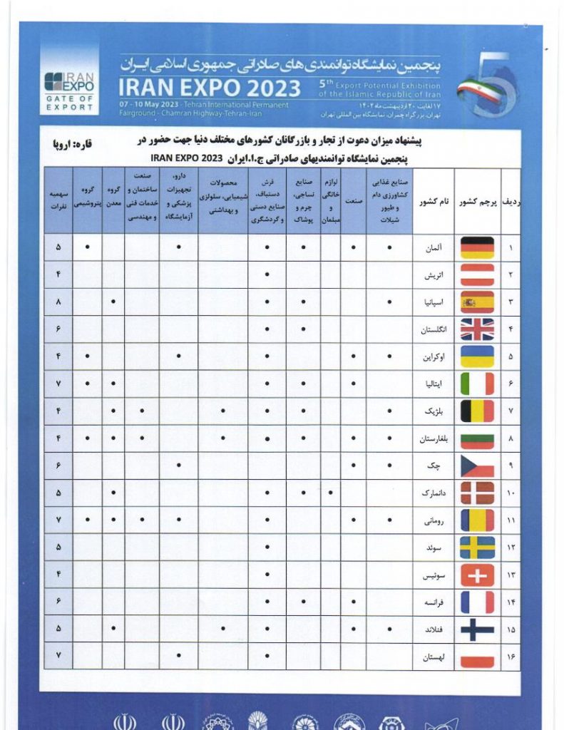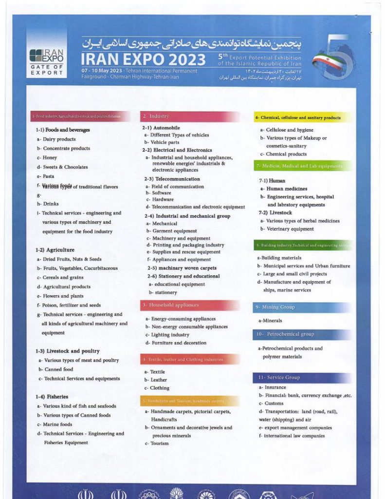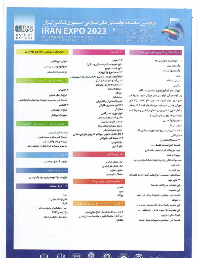 پنجمین نمایشگاه توانمندی های صادراتی جمهوری اسلامی ایران 17 لغایت 20 اردیبهشت ماه 1402 در محل نمایشگاه بین المللی تهران
